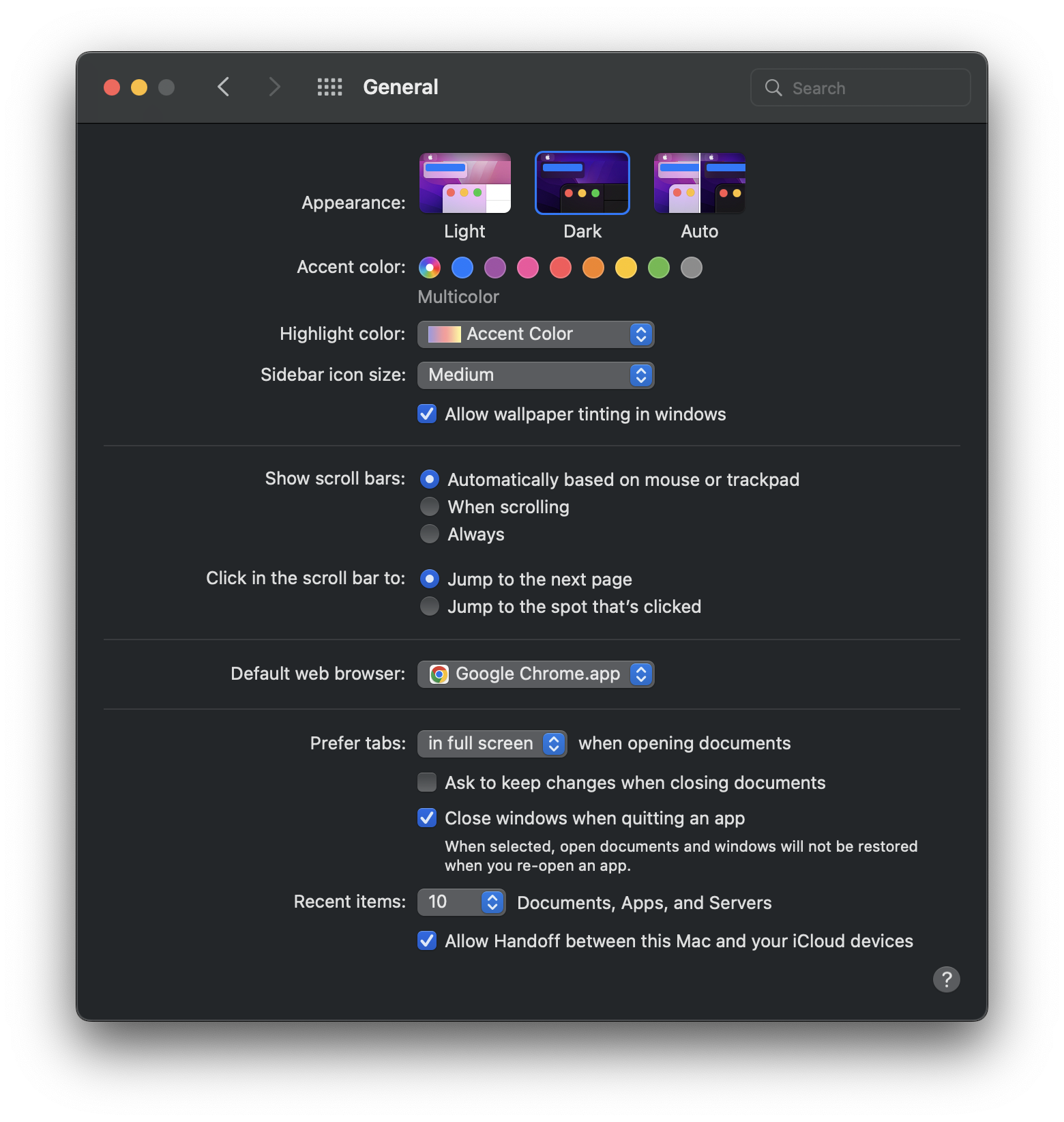 사용하는 기본 설정이다. 기본 브라우저는 크롬을 사용한다. 사파리를 사용하지 못 하는 이유글을 참고하면 좋을 것 같다.