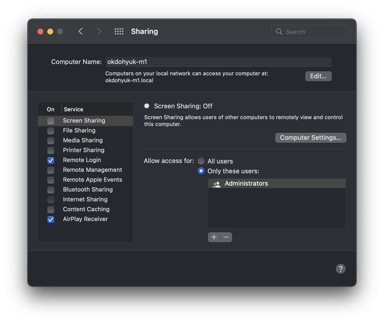공유 설정에서 컴퓨터 이름을 꼭 바꿔주어야 한다.