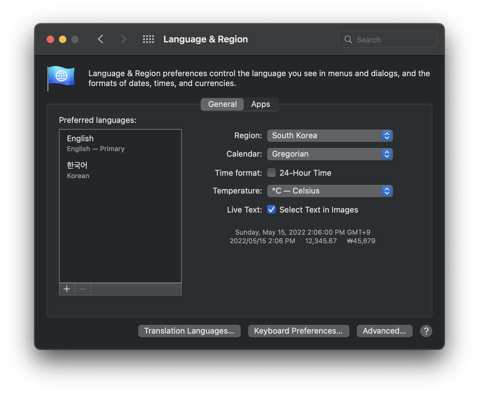 한국인이라면 한국어지만, 맥에 문제가 생기거나 검색한 결과의 자료를 따라 해야 하는데 기본 설정이 한국어라면,