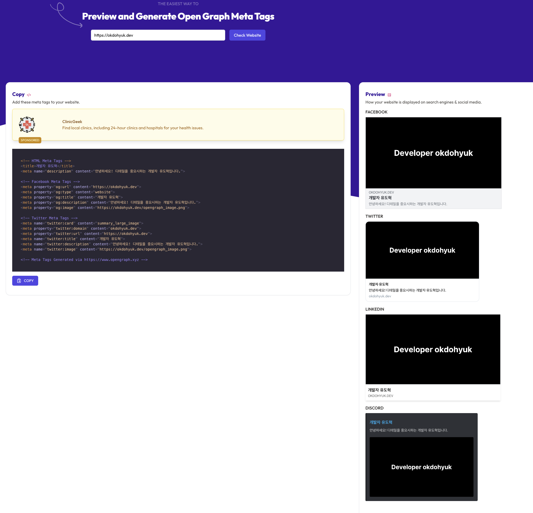 개발하면서 3000포트를 ngrok에 띄어 위 오픈그래프를 테스트할 수 있는 사이트에 테스팅을 하면서 개발했다.
