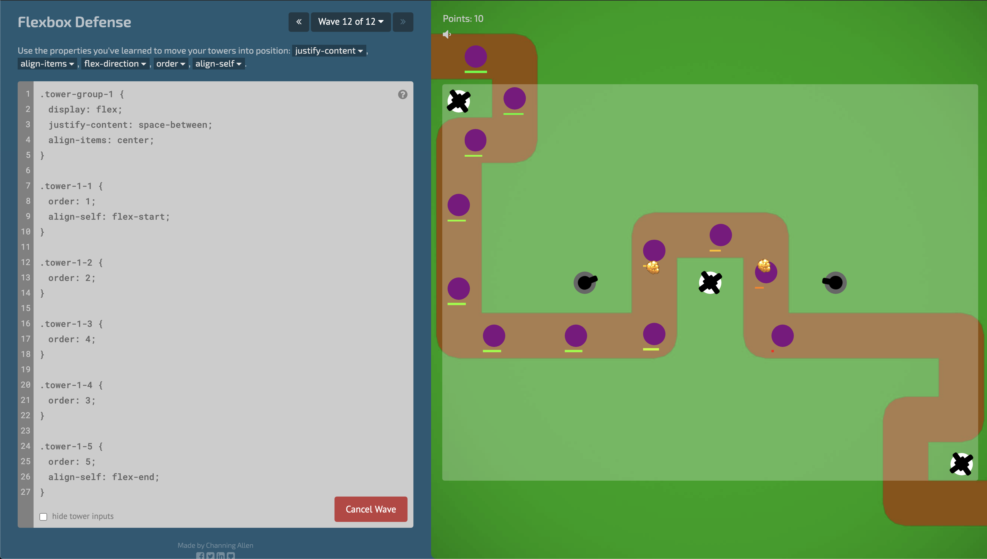 CSS를 쉽게 배울 수 있는 디펜스 게임을 발견했다.